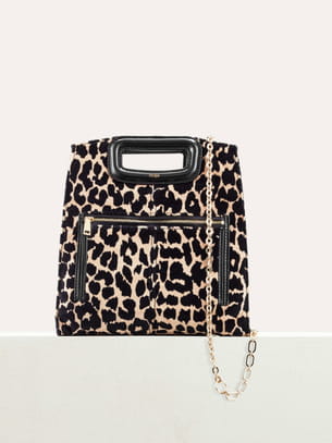 Sac à main signature de la marque en cuir de suede à imprimé léopard et avec chaînette amovible de Maje