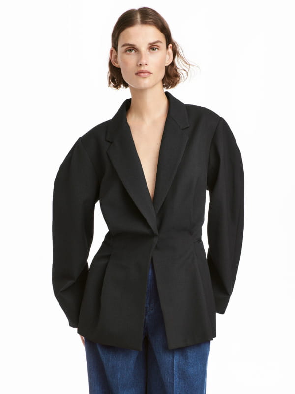 Veste en laine mélangée avec manches amples et pinces à la taille en coloris noir de H&M
