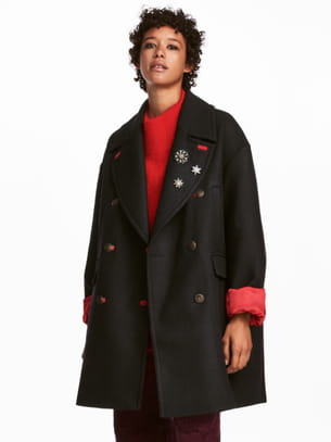 Manteau en laine mélangée avec boutonnière décorative en coloris noir de H&M