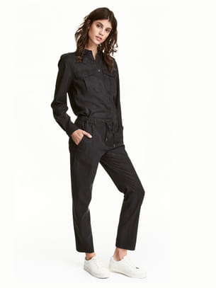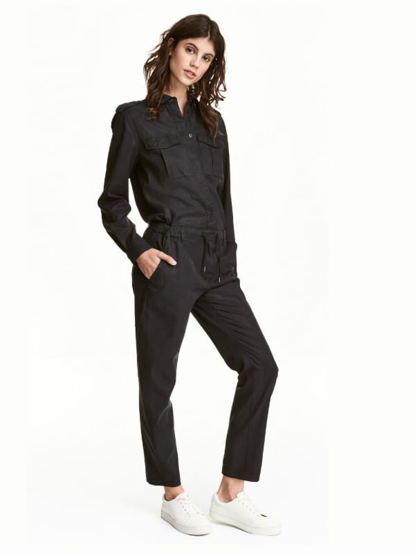 Combinaison pantalon en lyocell éco-responsable à manches longues, élastique à la taille et jambes effilées en coloris noir de H&M