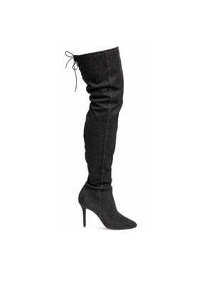 Cuissardes à bout pointu en textile noir scintillant avec talon de 10,5 cm de H&M