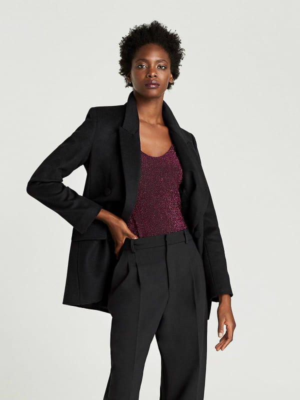 Body en maille brillante à manches longues avec décolleté en V sur le devant et au dos en coloris violet de Zara