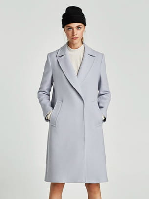 Manteau long en laine mélangée en coloris gris bleu de Zara