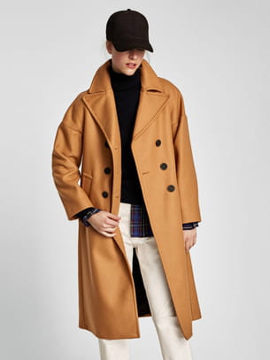 Manteau long à épaules tombantes et boutonnage croisé en coloris camel de Zara