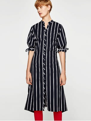 Robe chemise à rayures longueur genoux, à manches courtes avec lacets et col mao en coloris bleu marine et blanc de Zara