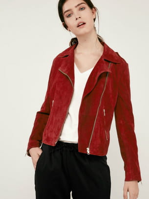 Veste en cuir suede rouge de Comptoir des Cotonniers