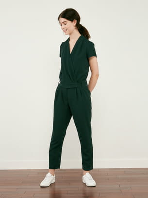 Combi pantalon avec coupe cache cœur et col V en vert sapin de Comptoir des Cotonniers