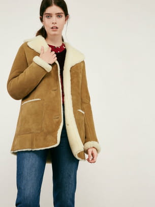 Manteau court en peau lainée camel avec col à revers de Comptoir des Cotonniers