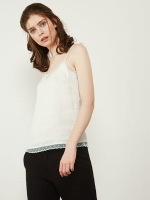 Top blanc léger avec détails de dentelle, broderie et à bretelles fines réglables de Comptoir des Cotonniers