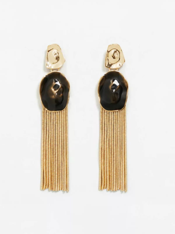 Boucles dorées avec pendentif en relief, chaines cascade et fermoir poussette de Mango
