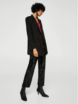Pantalon noir en sequins en coupe droite de Mango