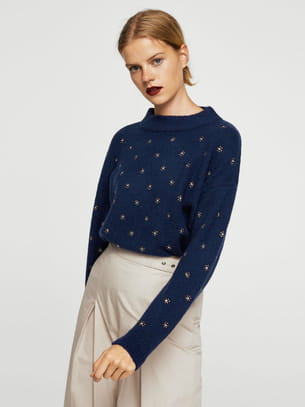 Pull-over asymétrique bleu marine en laine mélangée avec détails brodés de Mango