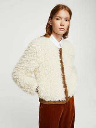 Gilet en tissu mouton à manches longues et liseres contrastants en coloris ecru de Mango