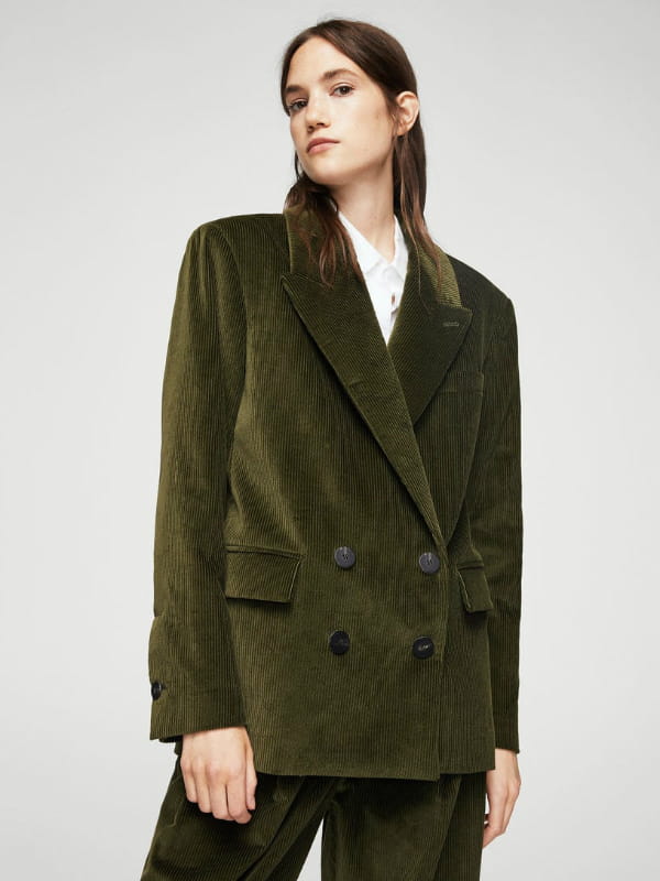 Blazer oversize kaki en tissu façon velours côtelé de Mango
