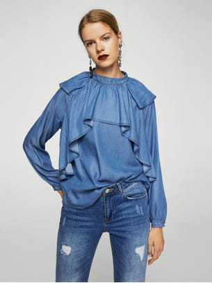 Blouse bleu moyen à empiècements à volants en tissu léger de Mango