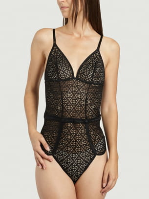 Body tanga en dentelle noire de Maison Lejaby chez L'Exception