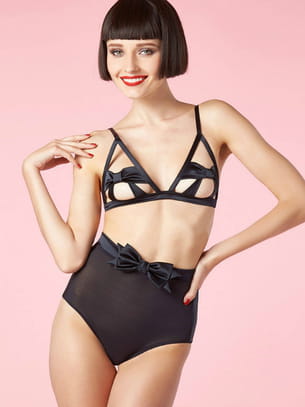 Soutien-gorge ajouré et culotte taille haute à nœud noir de Chantal Thomass chez Glamuse.com
