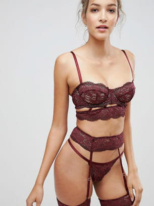 Soutien-gorge porte-jarretelles et string en dentelle bordeaux de Asos