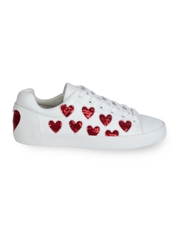 Sneakers blanches avec cœurs rouges en sequins de Ash