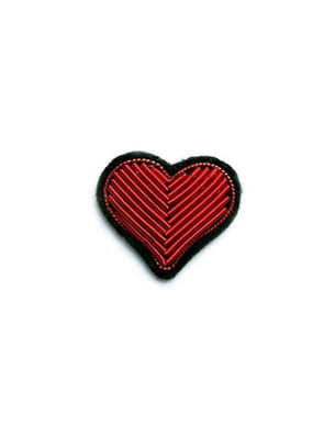 Petite broche brodée à la main façon écusson militaire en forme de cœur rouge de Macon & Lesquoy