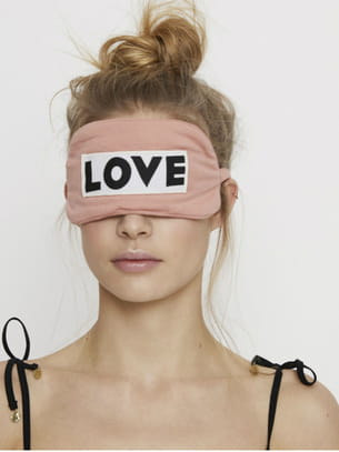 Masque pour les yeux en coton rose poudré avec appliqué LOVE de Love Sories Intimates