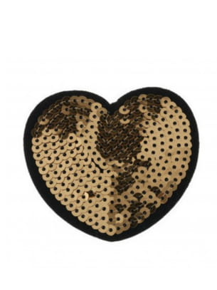 Broche avec système d'épingle, en forme de cœur recouvert de sequins dorés de Balaboosté