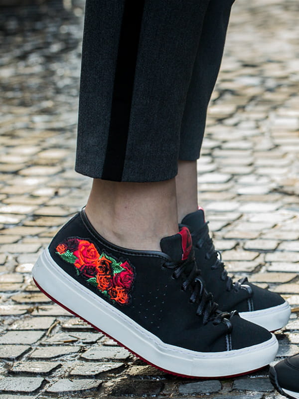 Baskets à semelle en gomme avec tige noire décorée de roses brodées de Le coq sportif