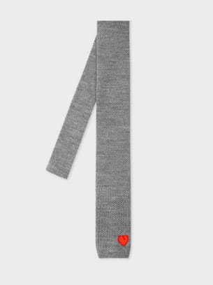 Cravate grise tricotée avec un cœur rouge brodé en laine de Paul Smith