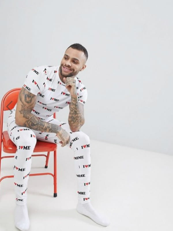 T-shirt et pantalon de pyjama à imprimé humoristique "I love me" de Asos