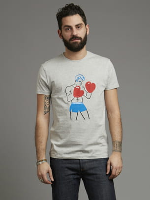 Tee-shirt gris chiné à manches courtes et à dessin de Olow