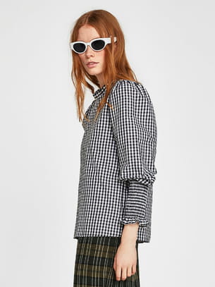 Blouse à carreaux à col volanté, manches longues et poignets élastiques avec fermeture au dos en goutte d'eau de Zara