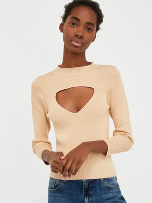 Top en maille à manches longues et détail ajouré sur ledécolleté en coloris nude de Zara