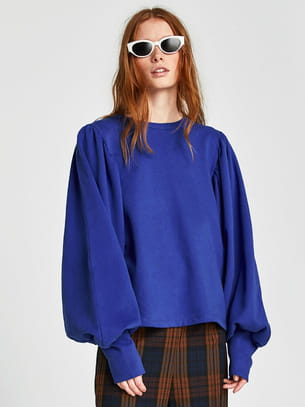 Pull à col rond, manches longues amples et poignets resserrés en coloris ultraviolet de Zara