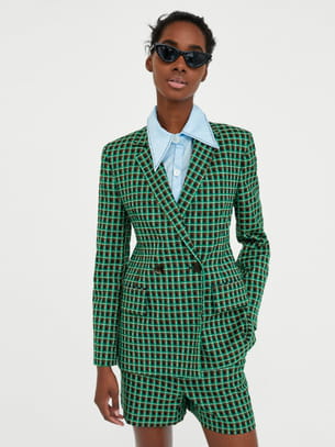 Blazer avec poches à rabats en coton mélangé à carreaux verts de Zara
