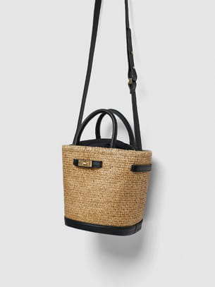 Sac à main tressé en raphia avec anse bandoulière et details en simili cuir noir de Zara