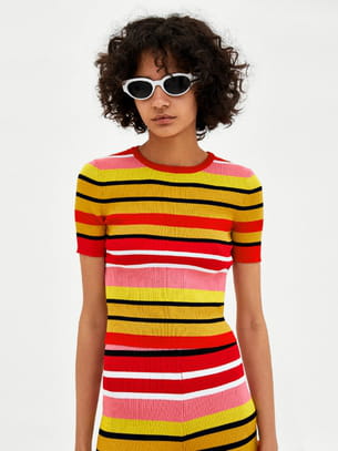 Pull en maille à rayures multicolores et manches courtes de Zara