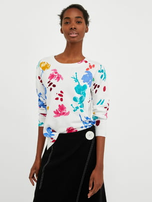 Pull en maille à imprimé fleurs multicolore sur fond blanc de Zara