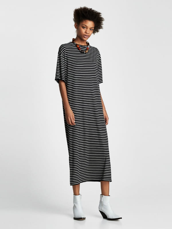 Robe t-shirt longue et large, fendue sur le côté à manches courtes et col rond de Zara