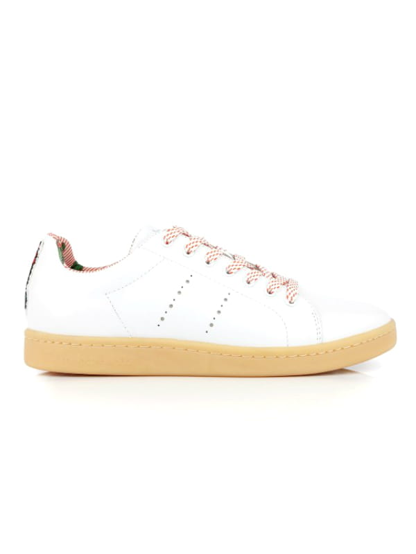 Sneakers en cuir blanches avec cactus à l'arrière de Mellow Yellow