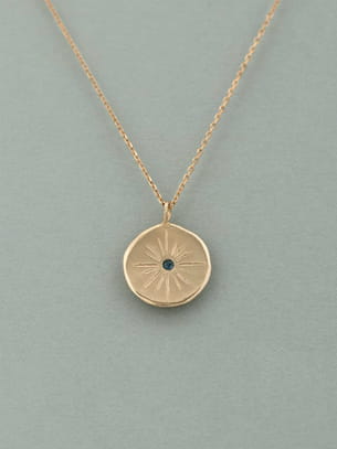 Médaille en vermeil gravée à motif soleil avec incrustation d'un saphir et vendue sur chaîne de Monsieur Paris