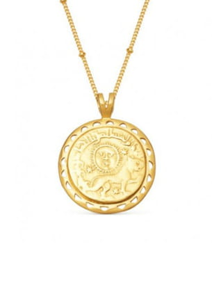 Médaille en or 18 carats à motifs soleil et lion inspirés de la Rome Antique et vendue sur chaîne de Missoma