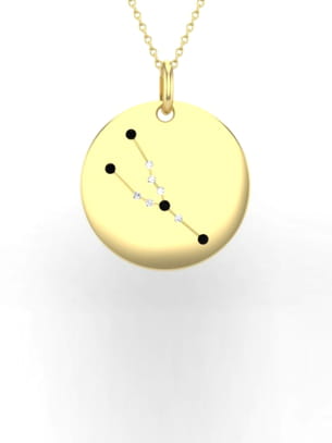 Médaille en or 18 carats incrustée de diamants et diamants noirs formant les différentes constellations des signes du zodiaque et vendue sur chaîne de Edendiam