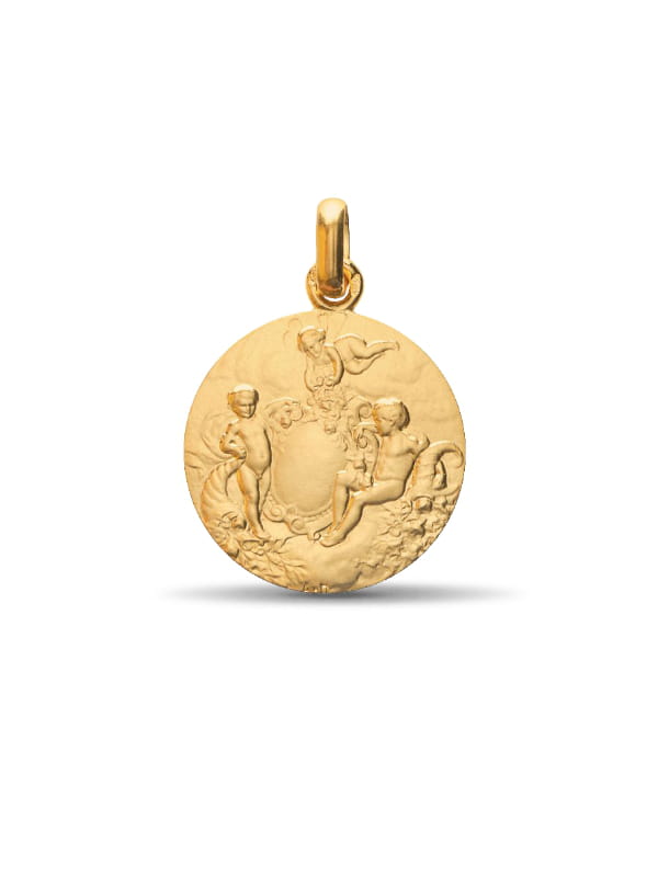 Médaille en or 18 carats représentant 3 angelots voletant autour d'un miroir et vendue sans chaîne de La Monnaie de Paris