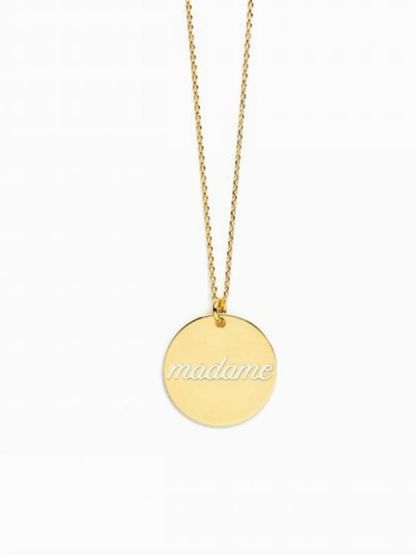 Médaille en laiton dorée à l'or fin gravée à message "Madame" émaillé en blanc et vendue sur chaîne de Monsieur Simone