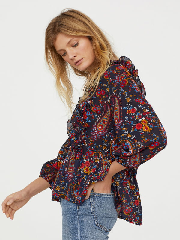 Blouse vaporeuse à volants imprimée Paisley rétro d'H&M