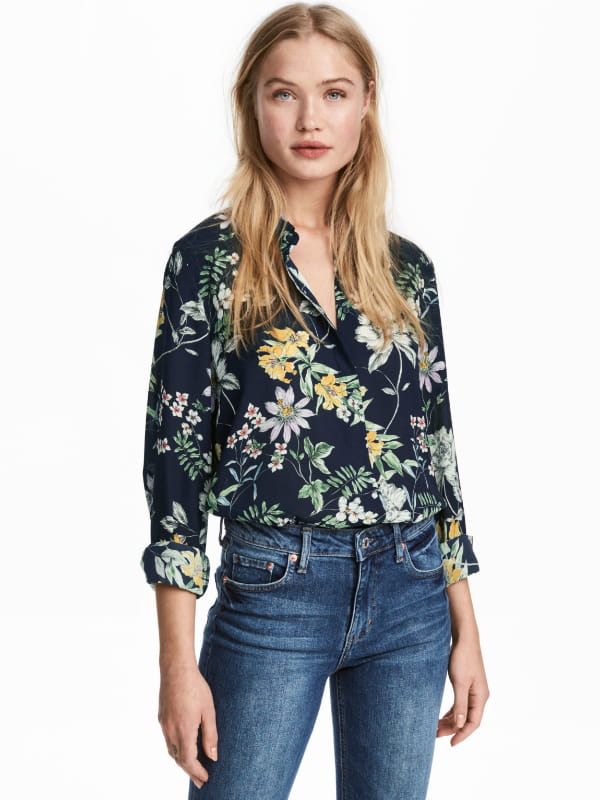 Chemisier bleu foncé fleuri en crêpe d'H&M
