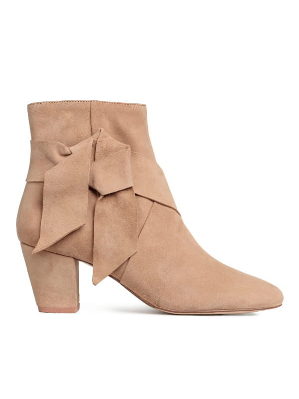 Boots en suède beige à nœud décoratif sur le côté et talon géométrique de 6,5 cm d'H&M
