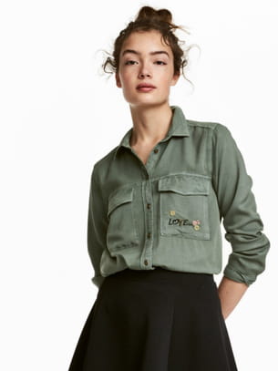Chemisier en viscose souple vert kaki à broderies décoratives d'H&M