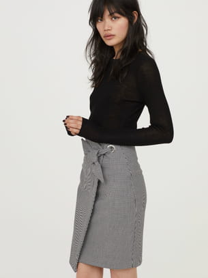 Jupe crayon longueur genou en tissu pied-de-poule à anneaux décoratifs en métal d'H&M