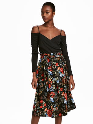 Jupe longueur genou en coton tissé fleuri d'H&M